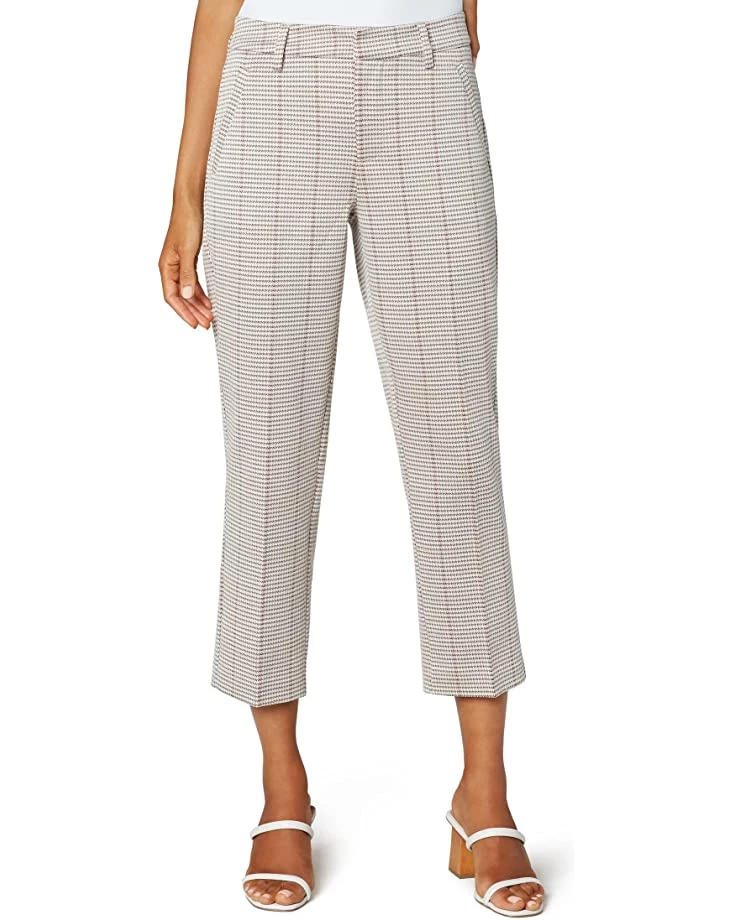Liverpool Petite William Straight Leg Trousers in Cream/Tan/Red Houndstooth | Pants